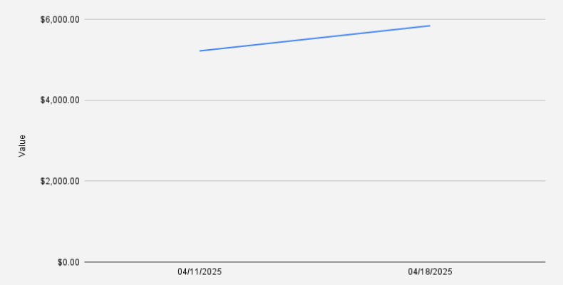 As of April 17, 2025, our covered call stock portfolio is valued at $5,841.36, reflecting a strong 11.92% week-over-week gain. However, it remains down -23.42% year-to-date.