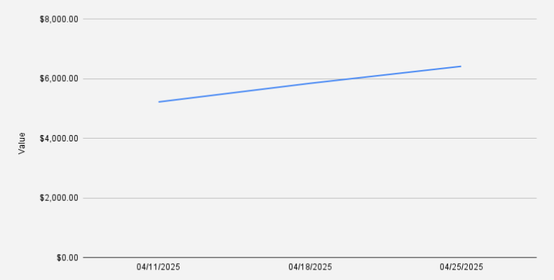 As of April 25, 2025, our covered call stock portfolio was valued at $6,411, reflecting another strong 9.76% week-over-week gain. However, it still remains down -15.87% year-to-date.