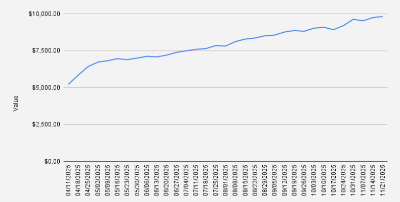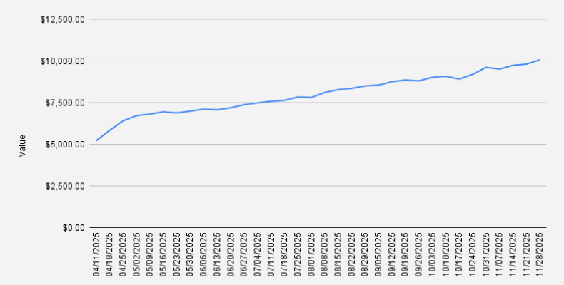 As of November 28, 2025, our covered-call stock portfolio has surpassed the $10K milestone for the first time, closing at $10,069 — a weekly gain of +2.64% (+$269 versus last week). We reached the $10K mark a few weeks earlier than expected.As…