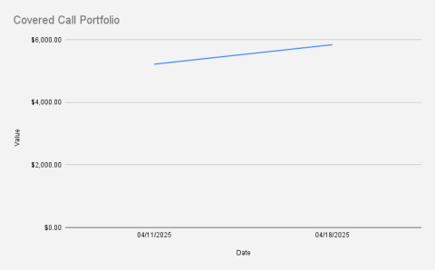 As of April 17, 2025, our covered call stock portfolio is valued at $5,841.36, reflecting a strong 11.92% week-over-week gain. However, it remains down -23.42% year-to-date.