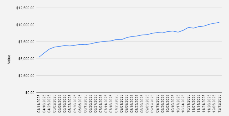 As of December 12, 2025, our covered-call stock portfolio has grown by an additional 1.12% and reached $10,350. It’s genuinely exciting to be above $10K for the third week in a row.Still, I’ve been in the stock market too long to rule out a possible…