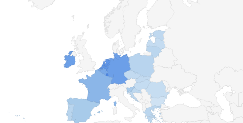 When visualizing data on the map, its' clearly visible that higher minimum wages are set in the Western European countries, despite the higher growth rates are found in Eastern European countries.