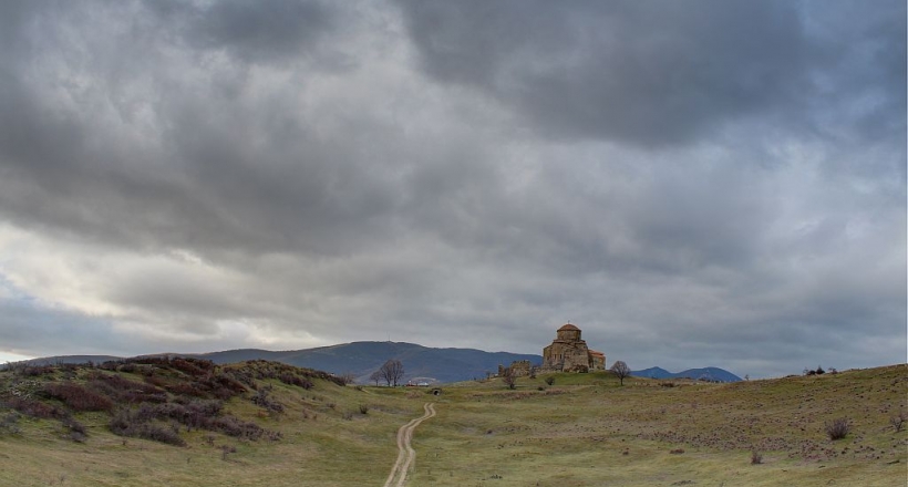 The Bodbe Monastery is nested among tall Cypress trees on a steep hillside overlooking the Alazani Valley, where it commands views of the Greater Caucasus mountains.