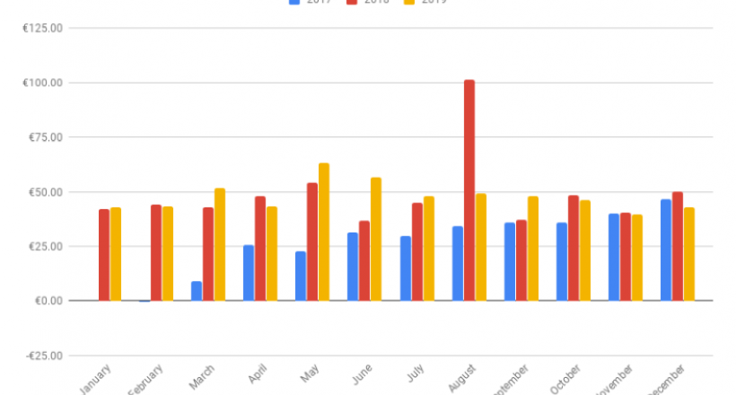 At the end of the month, I have collected $235.94 from dividend stocks and Mintos peer to peer lending platform. Compared to the previous December in 2018, that is a growth of 47.11%% (+$75.64). I really love such YoY growth