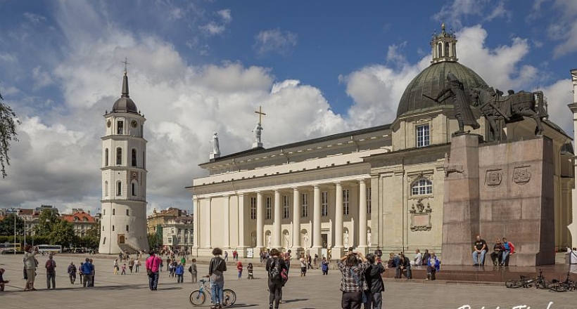 The Cathedral Square in Vilnius )is the main square of the Vilnius Old Town, right in front of the neo-classical Vilnius Cathedral. It is a key location in city's public life, situated as it is at the crossing of the city's main streets and reflecting the city's diversity. Regularly held at this site are fairs and gatherings of townspeople, military parades, religious and official public events, attractions and large concerts, New Year’s salutes and exhibitions. It is not merely the most lively and important location in the city, but is also one of the most significant and widely known symbols of Lithuania.