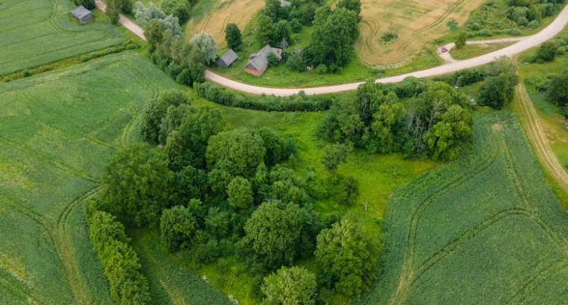 In the clump of trees was the house we were living with my grandmother. Opposite us, there was another house belonging to Jundzis, were his workers lived and a small pig farm was run.