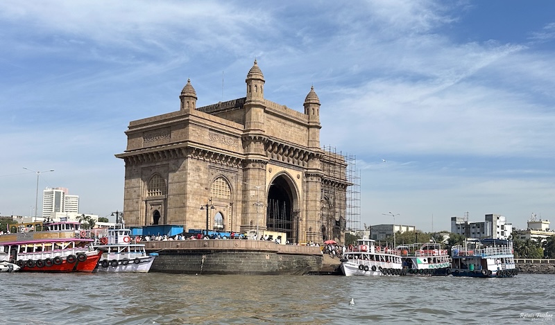 After taking a private boat trip from the harbor — the kind that locals casually offer — and seeing Mumbai’s waterfront from the water, the perspective shifted. Approaching the city from the Arabian Sea makes the Gateway feel less like a monument and more like a threshold. Reading the inscription on the arch, standing beneath the basalt structure, there was a strangely strong energy to the place — layered, unresolved.