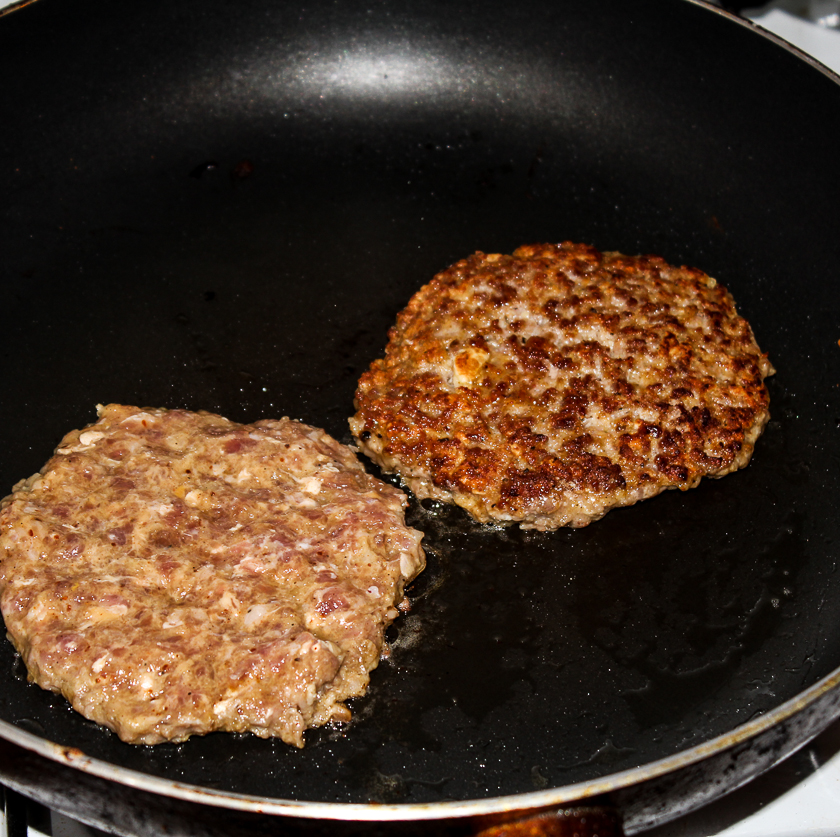 Now make a bun sized (diameter) patties from your patty filling and put them on some fire (pan) Fry until one side is brown enough, flip it over and add some cheese on it (if you preffer)